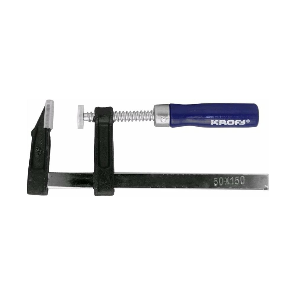 Струбцина f-образная 50х150 мм KROFTСтрубцина F-образные 50х150 мм. Применяется для зажатия и фиксации различных заготовок и деталей при склеивании и других слесарных работах. Зажимное устройство с трапециевидной износостойкой резьбой подвижной части крепко фиксирует детали и легко регулируется. Направляющая шина из качественной инструментальной стали с кованными чугунными губками, ручка из лакированной древесины. Характеристики:Высота зажима (мм):150Глубина зажима (мм): 50Материал губок: ЧугунМатериал направляющей: СтальМатериал рукоятки: Древесина