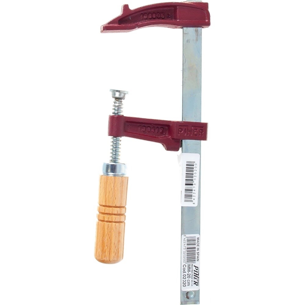 Струбцина с деревянной рукоятью Piher MM 20х7см, 4000N М00005906 обеспечивает быструю и жесткую фиксацию заготовок из дерева. Инструмент F-образной формы отличается высоким уровнем прочности и препятствует смещению детали в процессе работы. Глубина захвата составляет 7 см / 5.7 см до зажимной площадки / вместе с ней. Буковая рукоять приятна на ощупь, насечки исключают ее проскальзывание при вращении.