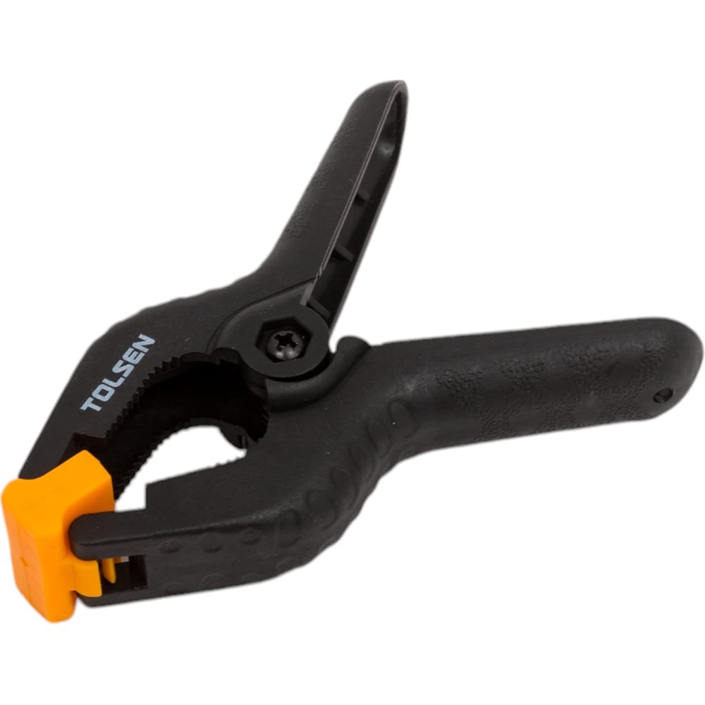 Струбцина-прищепка TOLSEN с фиксатором 4" 100 мм 10198 используется для зажима и фиксации деталей различных размеров. Корпус струбцины выполнен из нейлона и стекловолокна высокого качества. Материал отличается малым весом и устойчивостью к износу. Полиэтиленовые накладки не повреждают поверхность зажимаемой детали. Эргономичные рукоятки комфортны при работе.