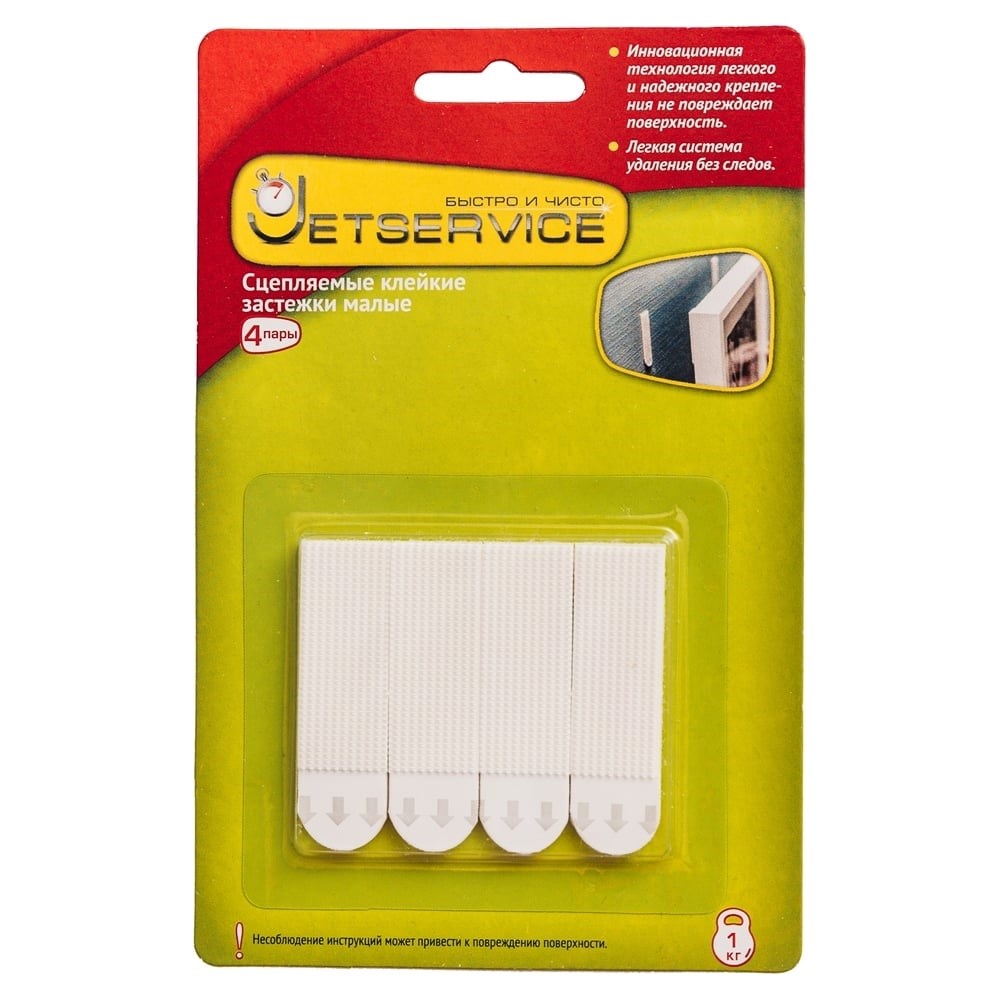 Сцепляемые клейкие застежки Jetservice малые, 4 пары 77702-1 предназначены для крепления картин, постеров и фотографий в раме. Застежки надежно держат и легко снимаются. Благодаря инновационной технологии застежка крепится к поверхности легко и надежно, не повреждая ее. Удалить застежку можно быстро, легко и бесследно, просто потянув клейкую полоску за язычок вниз.