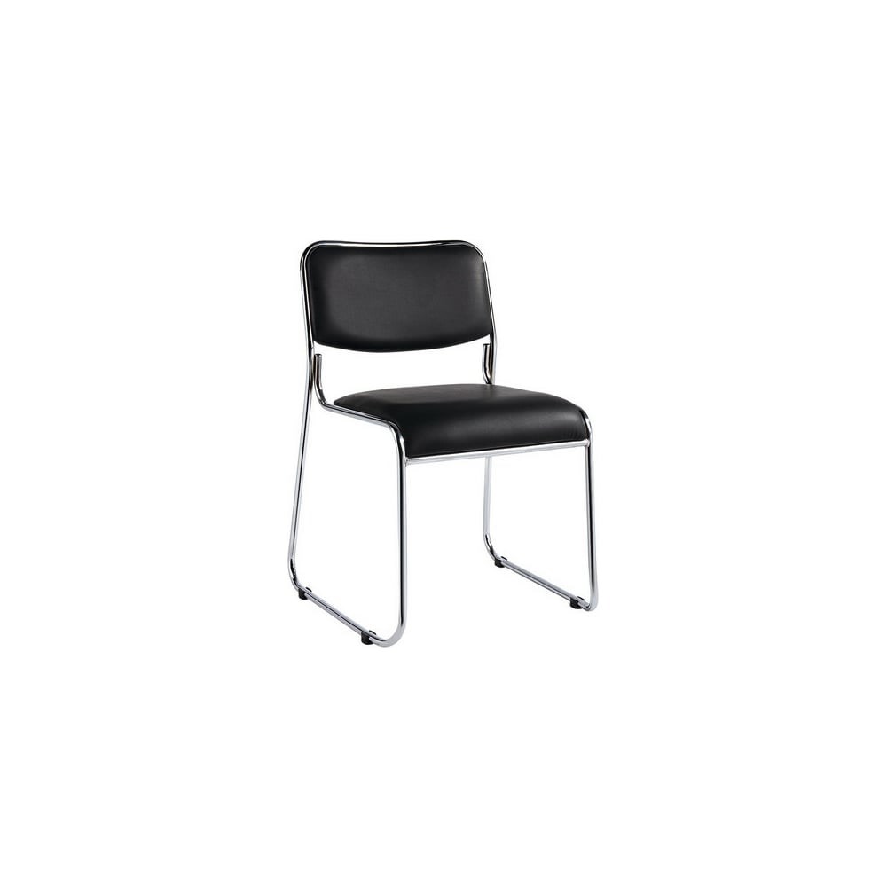 Стул предназначен для посетителей в офисе. Обивка черного цвета хорошо впишется в интерьер в современном стиле. Выполнен из искусственной кожи, благодаря чему стул легко чистить. Каркас изготовлен из хромированного металла, поэтому отличается прочностью.