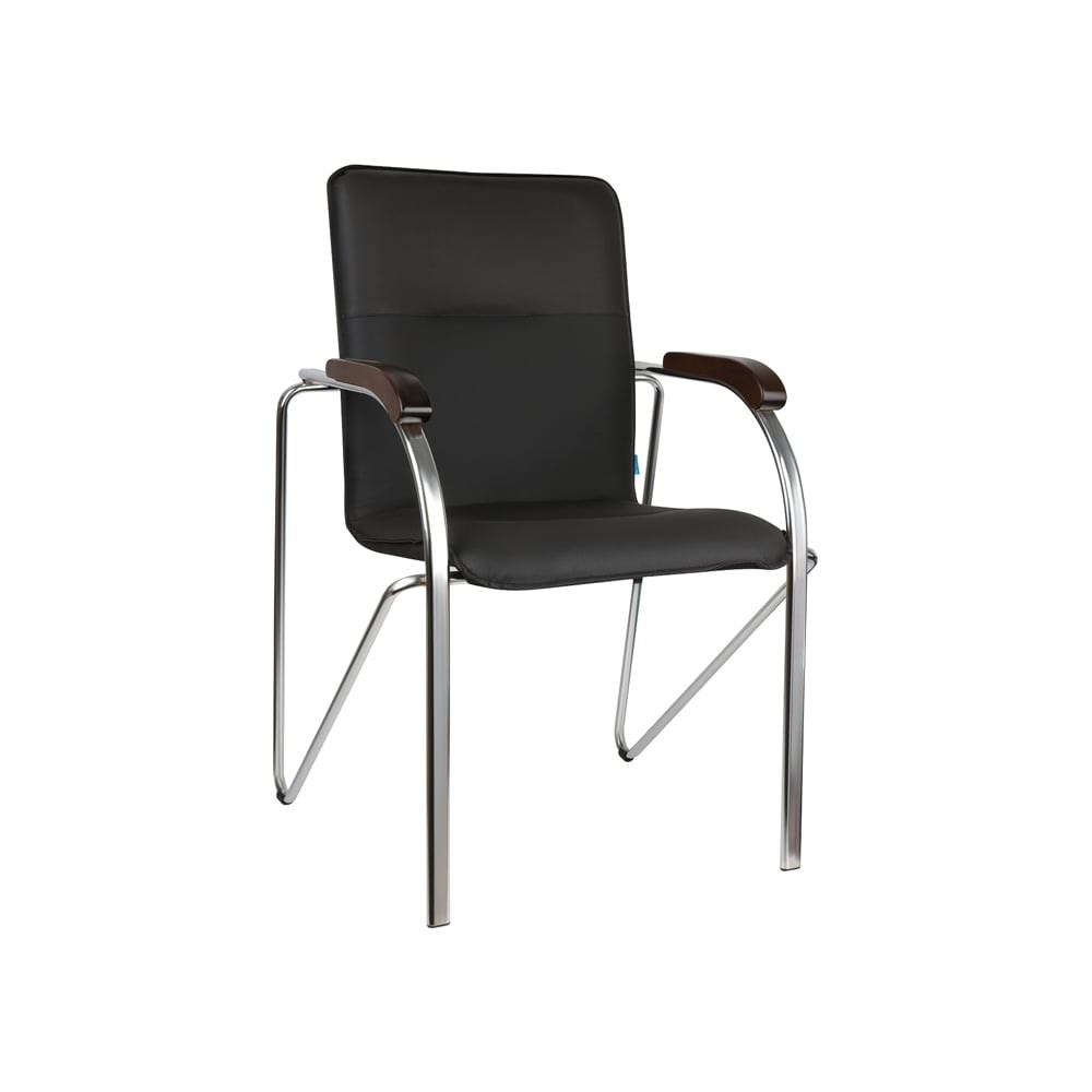 Стул Helmi hl-f03 самба, каркас металл хром, экокожа, черный, орех box2 344612 предназначен для офиса. Подходит для посетителей и сотрудников, поэтому отличается практичностью. Благодаря высокой прочности изделие прослужит долго. Стул легко чистится, за счет чего не требует сложного ухода.