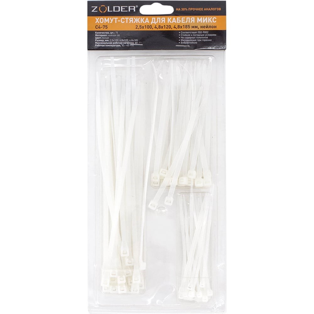 Стяжка для кабеля ZOLDER МИКС 2,5х100мм/4,8х120мм/4,8х185мм, 25/25/25шт. C4-75