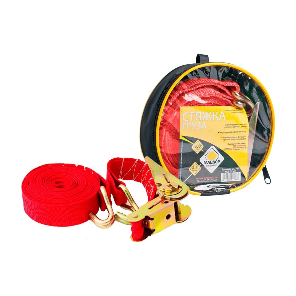 Стяжка груза ГЛАВДОР GL-346, 500 кг, 25 мм х 4,5 м, в сумке 52360 обеспечивает надежную фиксацию и выдерживает максимальную нагрузку в 500 кг. Широко применяется для крупногабаритных грузов. Для удобства пользования предусмотрена регулировка натяжения до нужного уровня.