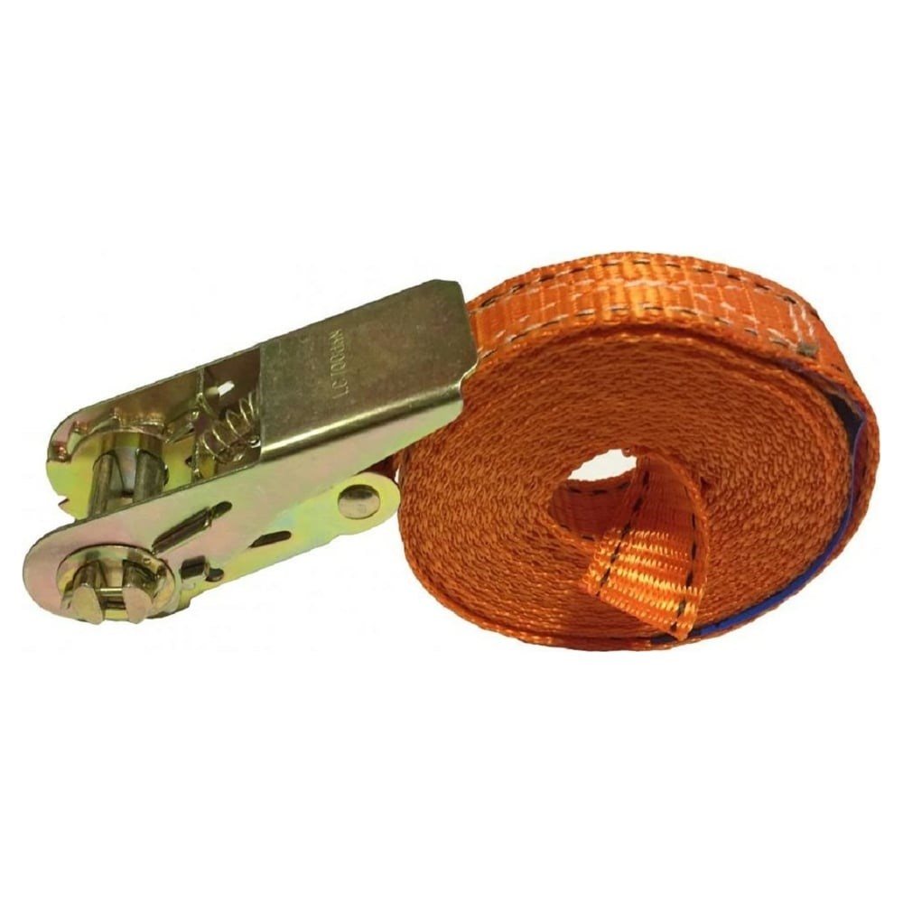 Стяжка (ремень) крепления груза Дали-Авто кольцевая, 5 м, 25 мм, 0.5-0.9 т (лента + механизм, без крючков) DA-01593 обеспечивает надежную фиксацию груза, препятствует его смещению и повреждению. Храповый механизм с рычажным приводом обеспечивает фиксацию и выбор длины ремня. Лента изготовлена из морозостойкого и влагостойкого материала.