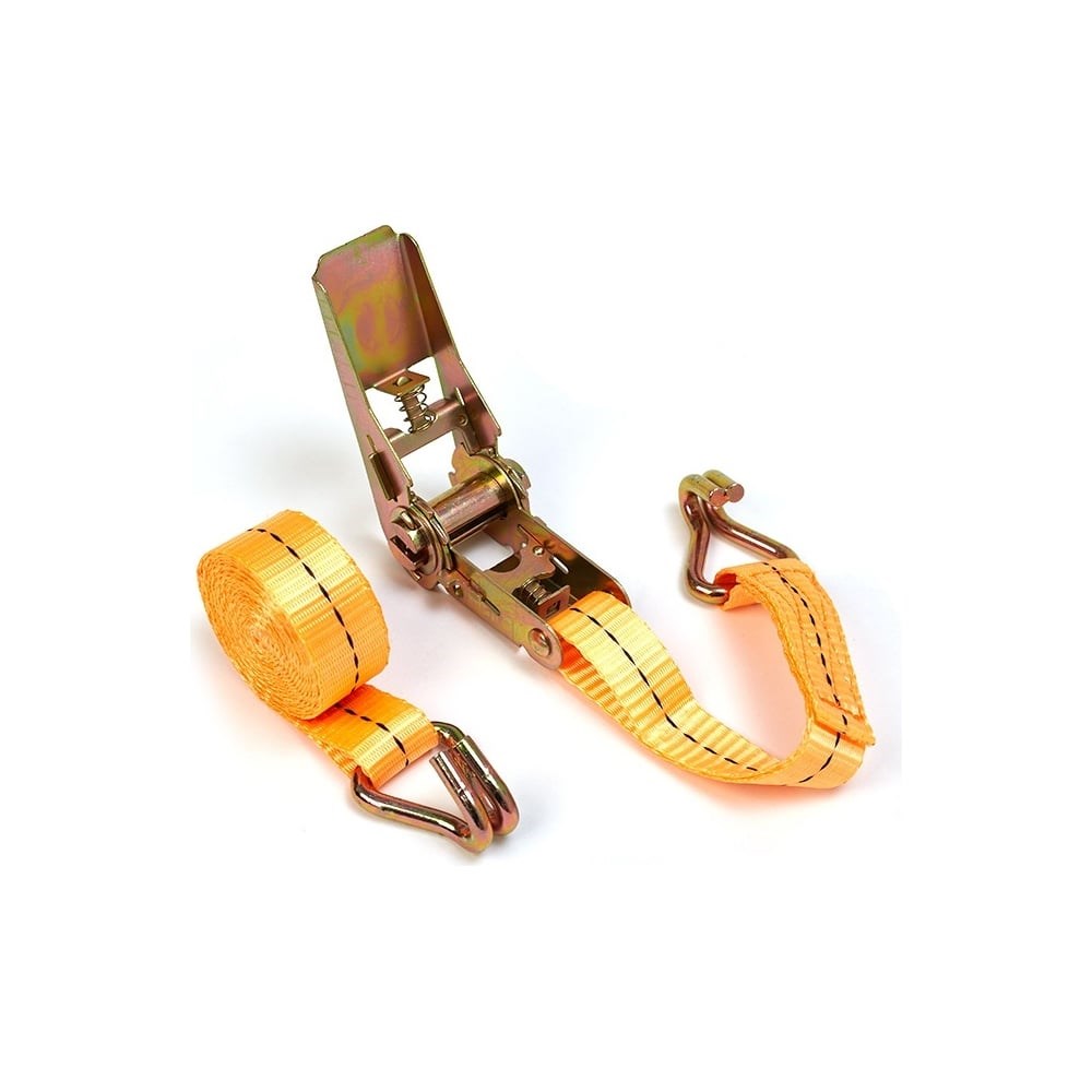 Стяжной ремень СК 0,8/1,6 т, 1 м, лента 25 мм CK1RST.00800.027305 применяется для фиксации грузов при перевозке на автомобилях, эвакуаторах и другом транспорте. Ремень изготовлен из текстильной ленты. Материал рассчитан на эксплуатацию в любых погодных условиях. Изделие надежно закрепляет транспортируемые предметы, не повреждая поверхность и не нарушая их форму. Надежный зубчатый механизм с упором после закрепления груза не позволяет ремню двигаться в обратную сторону, что предотвращает ослабление натяжения во время движения транспорта. Крюки выполнены из прочной стали. Такие стяжные ремни в основном применяют для крепления крупногабаритных грузов, например автомобилей на эвакуаторе.