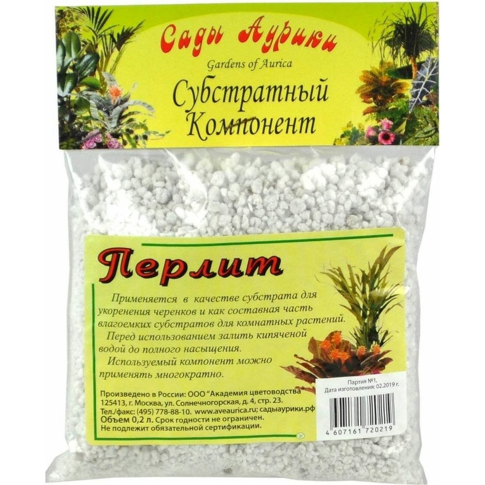 Субстрат Сады Аурики Перлит 0.2 л 050883 применяется в качестве субстрата для укоренения черенков и как составная часть влагоемких субстратов для комнатных растений. Гидрофильный материал, способный впитывать и впоследствии постепенно отдавать большое количество воды. Используется для увеличения влагоемкости почвенных смесей и для укоренения черенков (в любых пропорциях с речным песком). Образующаяся корневая система более мощная и плотная, чем при укоренении в воде, не страдает при посадке в более плотную почвосмесь.