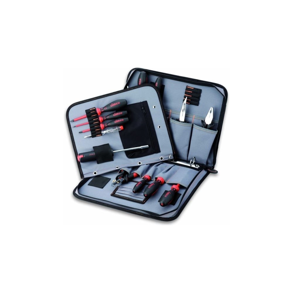 Сумка для инструмента и документов CIMCO 17 5130 пригодится для сервис-инженеров. Она оснащена 18 ячейками для различных инструментов, а также держателем с четырьмя пружинами для каталога и прочих документов. Для крепления мелкого инструмента, телефона или рулетки предусмотрено два эластичных держателя. В комплекте с сумкой поставляется папка формата А4 с двумя ручками для удобной переноски.