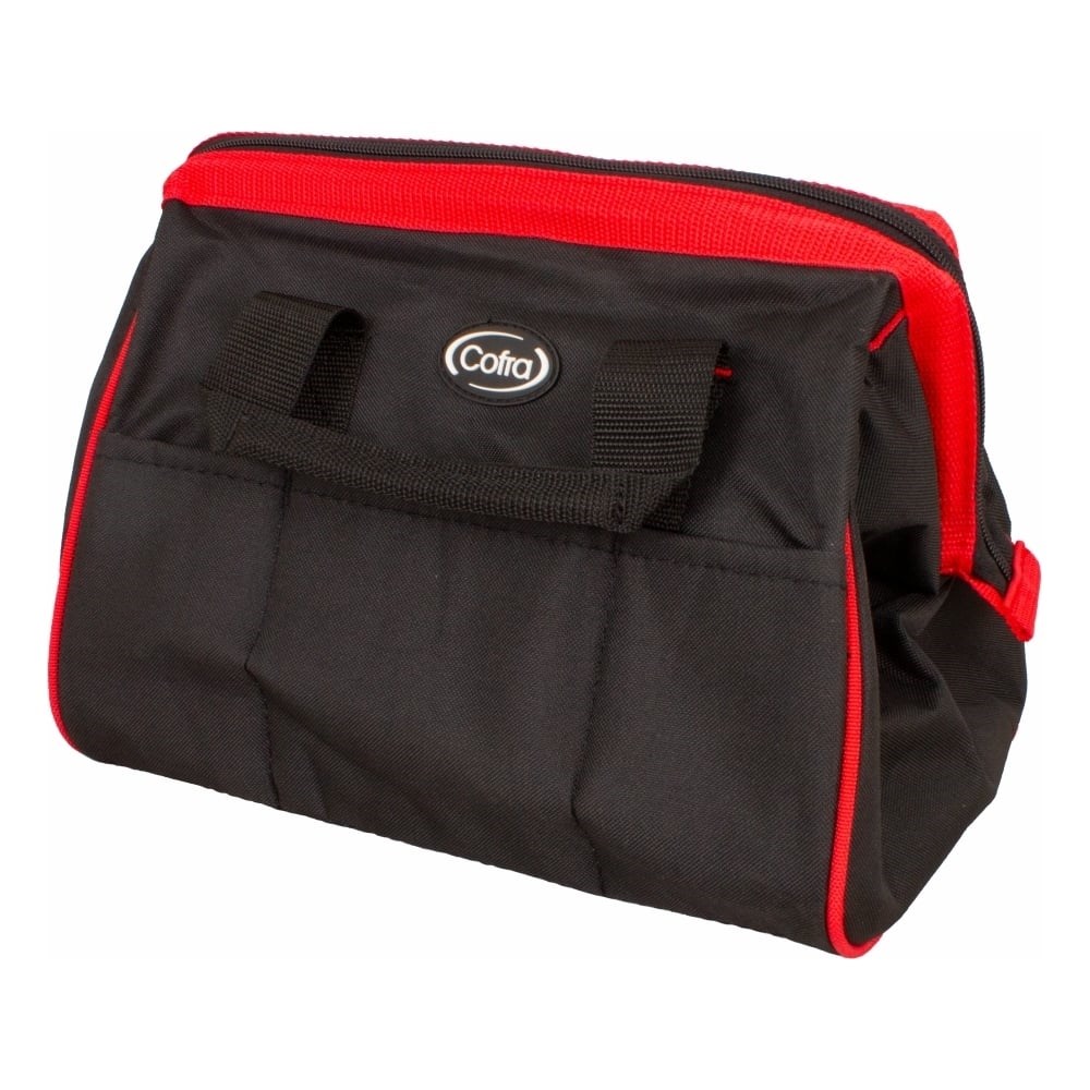 Сумка для инструментов COFRA с мягким дном, 320x220x260 мм, цвет красный/черный TC-4214WR представляет собой удобную модель для переноски и хранения инструментов и прочих пренадлежностей. Жесткий каркас из стальной проволокиЦвет: красный/черный, материал: полиэстерКарманы - 6 внешних, 8 внутреннихЗастежка-молния