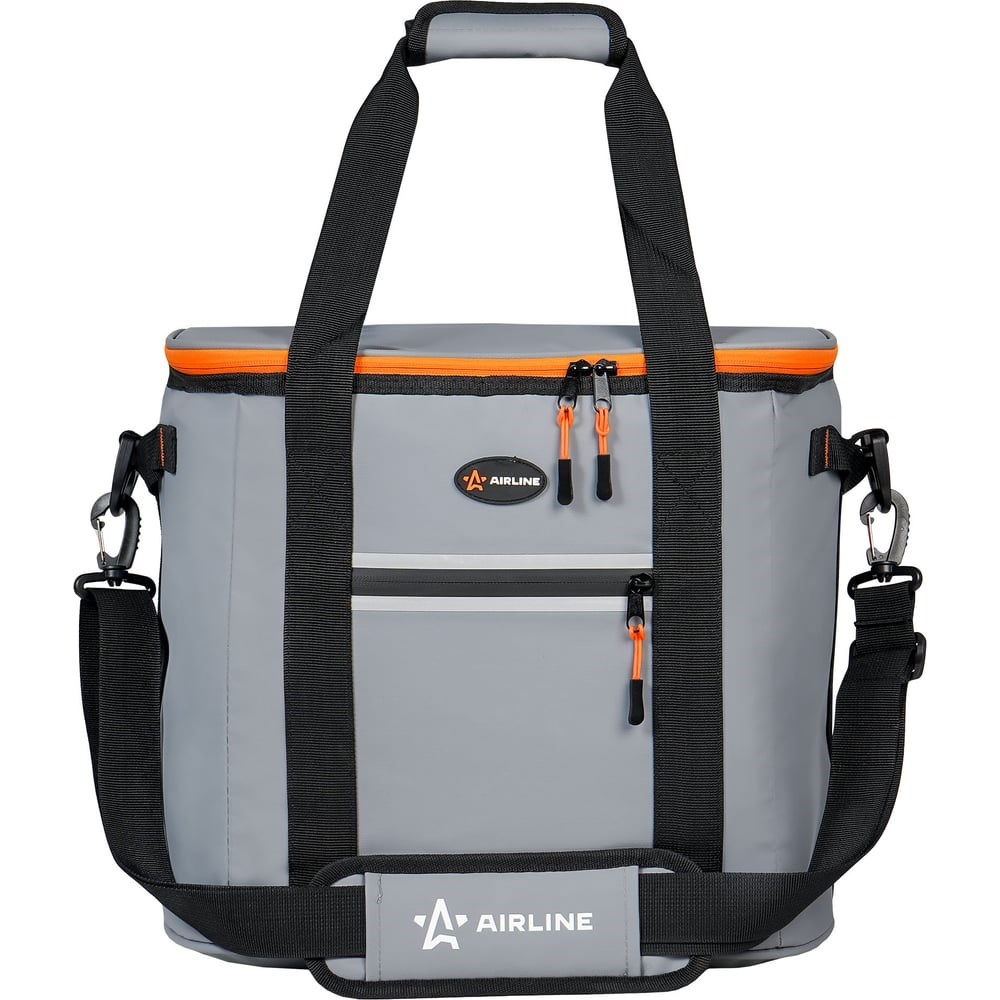 Сумка-холодильник Airline Пикник 23 л, 32х30х24 см, серая ADCB007 - это надежное средство для обеспечения необходимой температуры и поддержания ее на протяжении длительного периода времени для транспортировки продуктов или других веществ. Сохранение температуры происходит из-за состава изделия, в который входят полиэстер, вспененный полиуретан, а также водонепроницаемая PEVA пленка. Сумка имеет дорожно-спортивный фасон кубической формы, что позволяет использовать ее не только для хранения продуктов, но и для перевозки объемных вещей. Для удобства открывания замочки молнии оснащены пуллерами (подвесками).