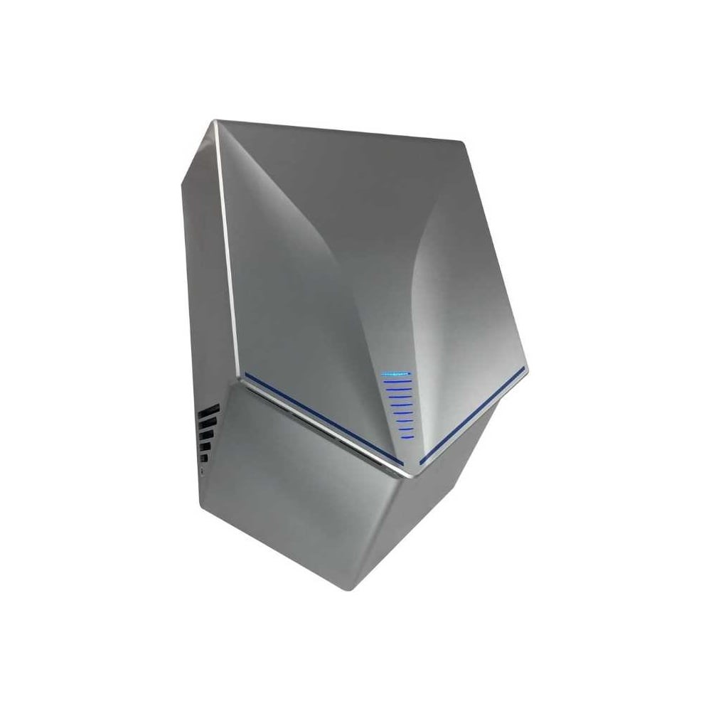 Электрическая сушилка для рук, скоростная, c направленным потоком воздуха из двух плоских сопел, расположенных под углом друг к другу, цвет серый, с неоновой подсветкой, незаменима в местах с большой проходимостью людей. Сушилка оснащена надёжным и долговечным двигателем. Прибор облачён в ударопрочный корпус. Параметры - 1000W, автоматическая, АС 220-230В 50/60Гц, сенсор включения 50 - 150 мм, скорость потока >15 м/c, температура воздуха >40°C, влагозащищенность IPX1.