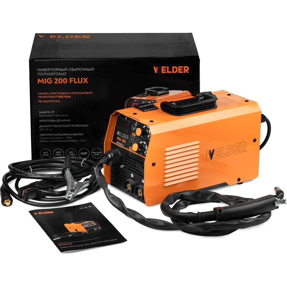 Сварочный инвертор WELDER ММА-200 FLUX (полуавтомат без газа) 200 А представляет собой компактную модель, которую удобно перевозить. Работает от сети 220 В. Данная модель оборудована ручкой для удобной переноски одной рукой. Понятная панель управления обеспечивает быструю настройку аппарата.