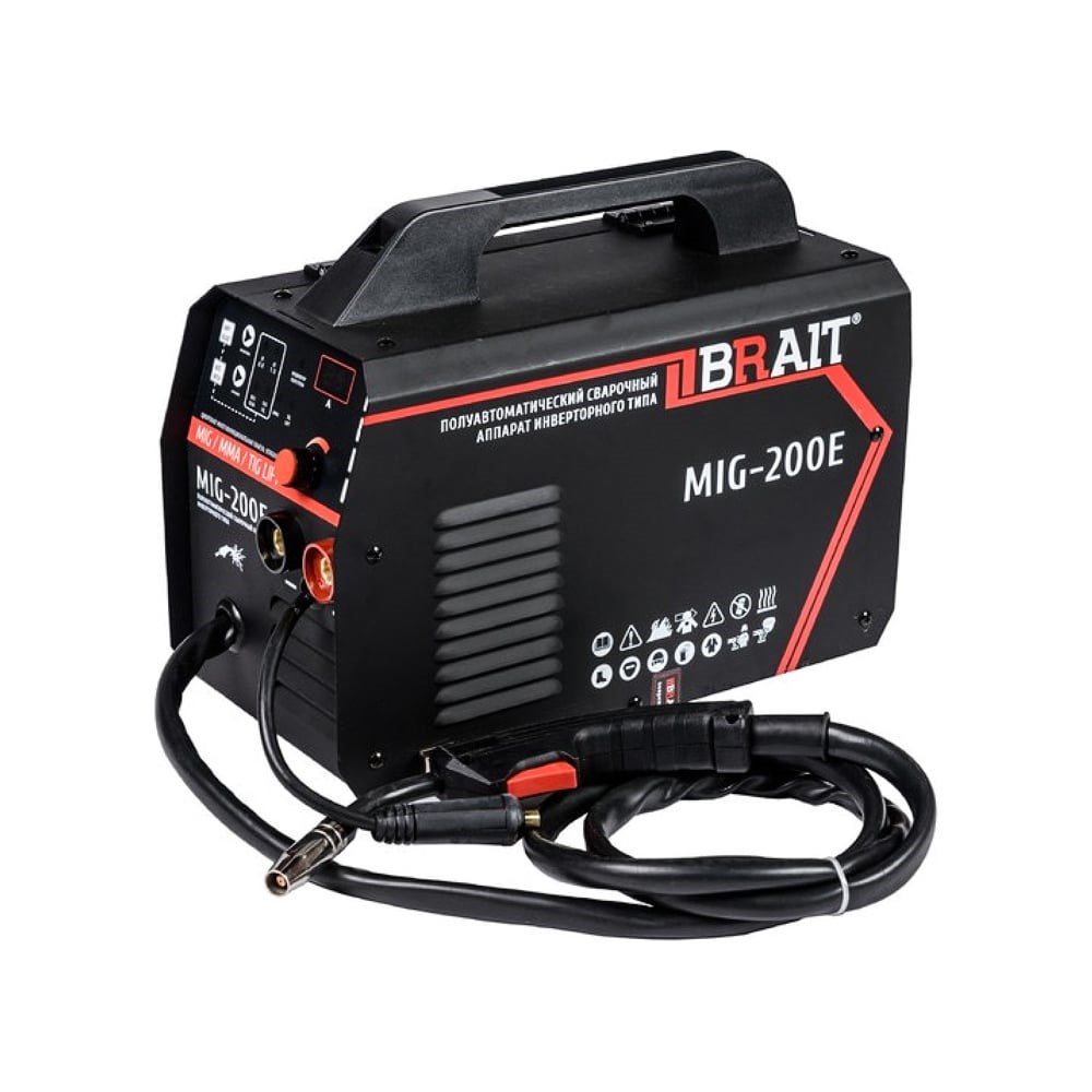 Сварочный инвертор полуавтомат BRAIT MIG-200E 18.01.021.043 обладает максимальным сварочным током 200 А и используется для MMA и MIG/MAG сварки. За счет небольшого размера и малого веса аппарат подойдет для мелких ремонтных работ. Устройство обеспечивает качественный сварной шов при минимальных усилиях. Не остается окалины, что позволяет быстрее заваривать швы. Три режима работы: Полуавтоматическая сварка по стоянным током сплошной проволокой диаметром 0,8 / 1,0 мм в среде углекислого газа углеродистых и нержавеющих сталей Полуавтоматическая сварка постоянным током порошковой проволокой без использования газа Ручная дуговая сварка штучными покрытыми электродами 4,0 мм на постоянном токе с рутиловым и основным покрытием
