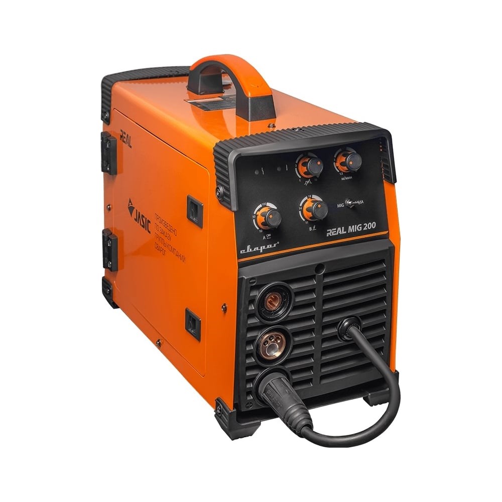 Сварочный инвертор Сварог MIG 200 REAL N24002N 95727 используется для сварки металлических изделий покрытыми электродами ММА, а также полуавтоматической сварки методом MIG/MAG с газом и без газа. Имеется встроенный двухроликовый механизм подачи проволоки, скорость подачи составляет от 1.5 до 14 м в минуту. Холостой прогон и функция дожигания проволоки позволяет избежать залипания проволоки внутри ванны. Дополнительные характеристики: Частота питающей сети - 50 Гц; Потребляемый ток - 35 А; Сварочный ток MIG - 30 - 200 А; Сварочный ток MMA - 10 - 160 А; Рабочее напряжение MIG - 15.5 - 23.5 В; Рабочее напряжение ММА - 20.4 - 26.4 В; Сварочный ток MIG (ПН 100%) - 155 А; Сварочный ток MMA (ПН 100%) - 142 А; Напряжение холостого хода MMA - 52 В; Максимальная масса катушки - 5 кг; КПД - 85%; Класс изоляции - F.