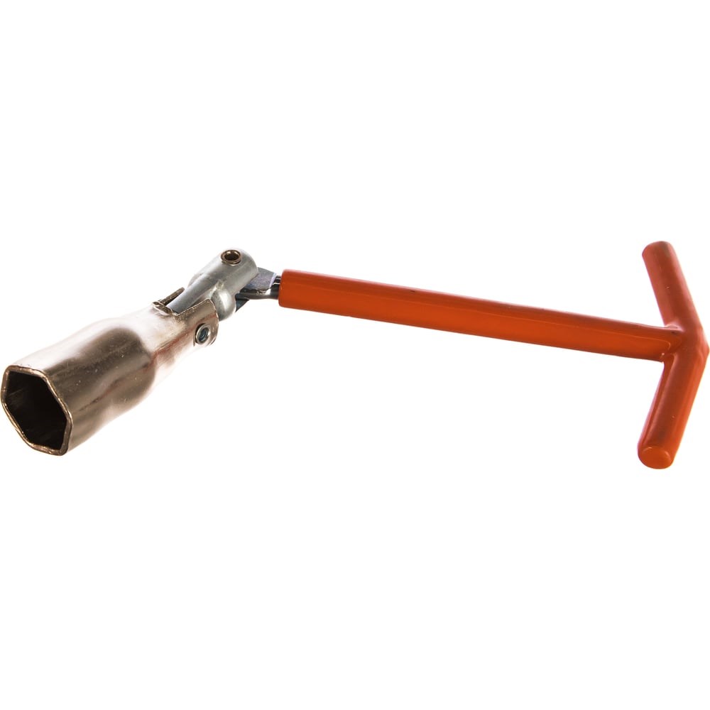 Свечной ключ с шарниром 21 мм SPARTA 138405 изготовлен из углеродистой стали с защитным цинковым покрытием. Двойной шарнир обеспечивает удобный угол наклона инструмента и при необходимости увеличивает плечо его вращения. Резиновая вставка внутри рабочего профиля позволяет удерживать свечу зажигания при ее извлечении из корпуса двигателя.