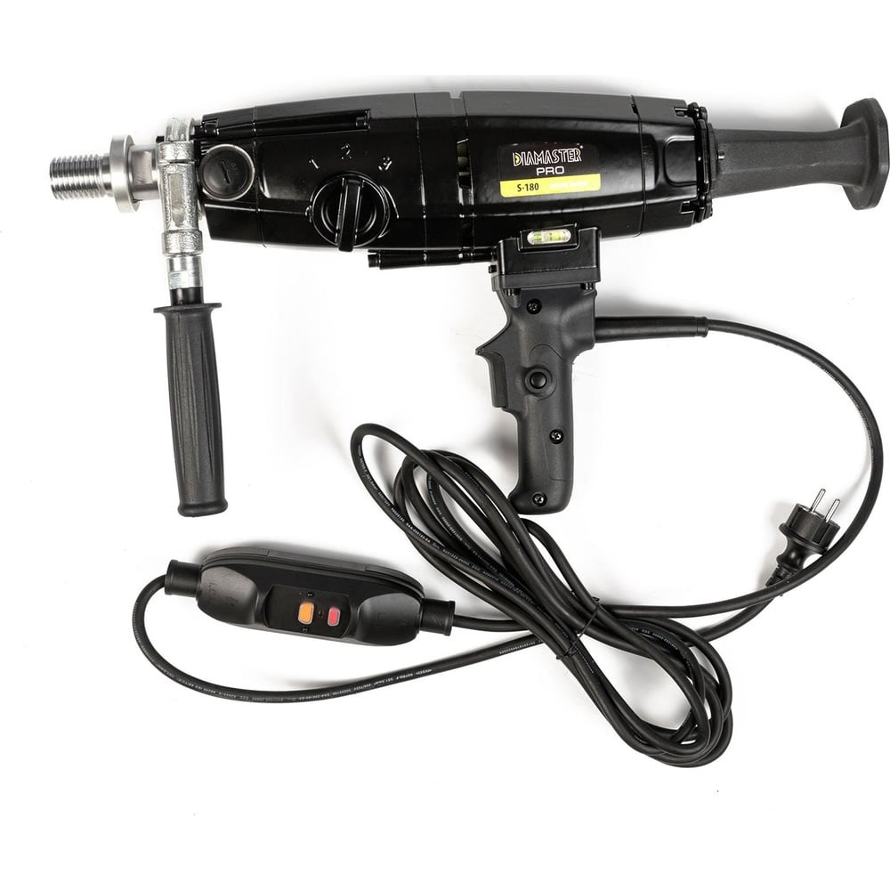 Профессиональная установка алмазного буренияDiamaster PRO S-180 мощностью 2.0 кВт подходит для работы с такими материалами, как кирпич, асфальт, бетон, железобетон и пр. Может применяться вручную или в составе со стойки с посадочной проушиной 60 мм. Используется совместно с коронками диаметром не более 180 миллиметров. Установка предназначена для сухого и мокрого реза. Предусмотрена возможность подключения строительного пылесоса, что позволит существенно снизить пылеобразование. Предохранительная муфта редуктора обеспечивает безопасную эксплуатацию. Имеет три скорости сверления 520/1400/2900 оборотов в минуту.