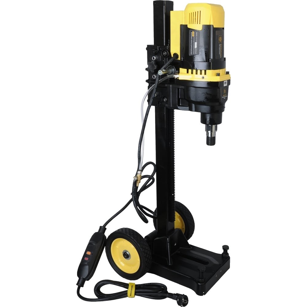 Станок алмазного сверления Hanskonner HBD395 — надежный и мощный электроинструмент для мокрого сверления алмазными коронками отверстий в таких материалах: бетон, железобетон, искусственный и натуральный камень, кирпич. Данная модель оснащена LCD дисплеем, что позволяет контролировать обороты и нагрузку во время выполнения работы. В случае заклинивания коронки сработает предохранительная муфта SafetyClutch и предотвратит поломку механизмов и двигателя, при других видах перегруженности важна встроенная термозащита OverloadProtect, которая отключит машину ввиду возникшей необходимости. Применение в конструкции фирменных японских подшипников NSK повышенного ресурса способствует исправной и долговечной эксплуатации электроинструмента. Удобству в практическом обращении с машиной содействует адаптер алмазных коронок и прочная стальная сверлильная стойка, идущие в комплекте. Морозостойкий резиновый сетевой кабель длинной 4 м.