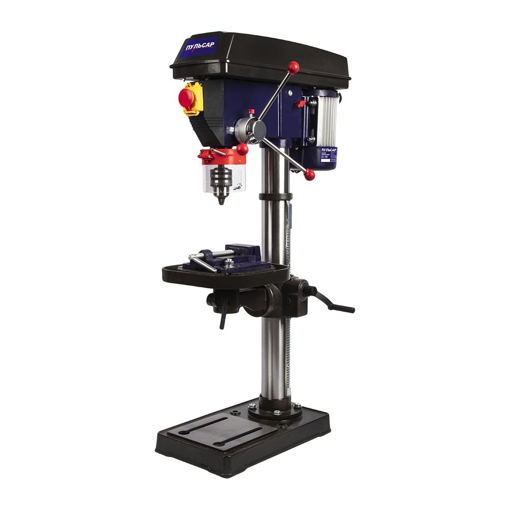 Сверлильный станок ПУЛЬСАР СС 700 700Вт, 16мм, 16 скоростей, 180-2770 об/мин, 39 кг 793-442 удобен в использовании: Прозрачный кожух для защиты оператора от стружки при сверлении. Выключатель с аварийной кнопкой. Чугунный рабочий стол, регулируется по высоте, углу наклона, в осевом направлении. Чугунные тиски в комплекте.