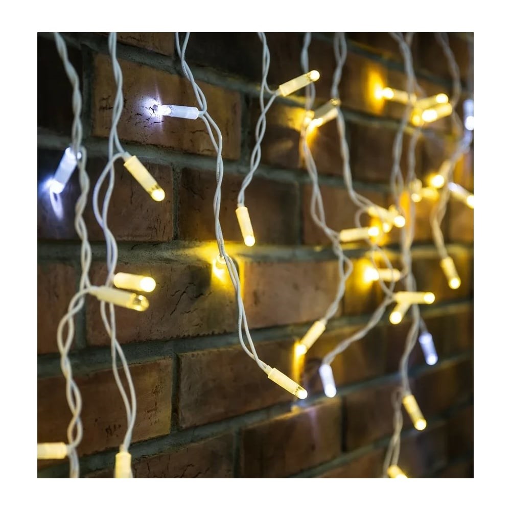 Гирлянда Айсикл (Бахрома) представляет собой гибкий горизонтальный шнур-шину, к которому через определенные промежутки крепятся вертикальные нити разной длины со светодиодами. Она имитирует сосульки и может послужить оригинальным решением при украшении карнизов, арок, фасадов зданий, витрин магазинов, а также стать эффектным элементом декора внутри помещений.Благодаря использованию светодиодов отличительной особенностью гирлянды является превосходная яркость и низкое энергопотребление. При длине 4,8 м гибкая направляющая имеет 48 вертикальных нитей от 20 до 60 см.Данная гирлянда имеет теплый белый цвет свечения и предназначена для использования как внутри помещений, так и снаружи. Наличие мерцающих светодиодов белого цвета привлекает внимание и значительно преображает украшенную поверхность (мерцает каждый пятый светодиод).Для подключения необходимо приобрести шнур питания 303-500-1 (код товара: 16034088).