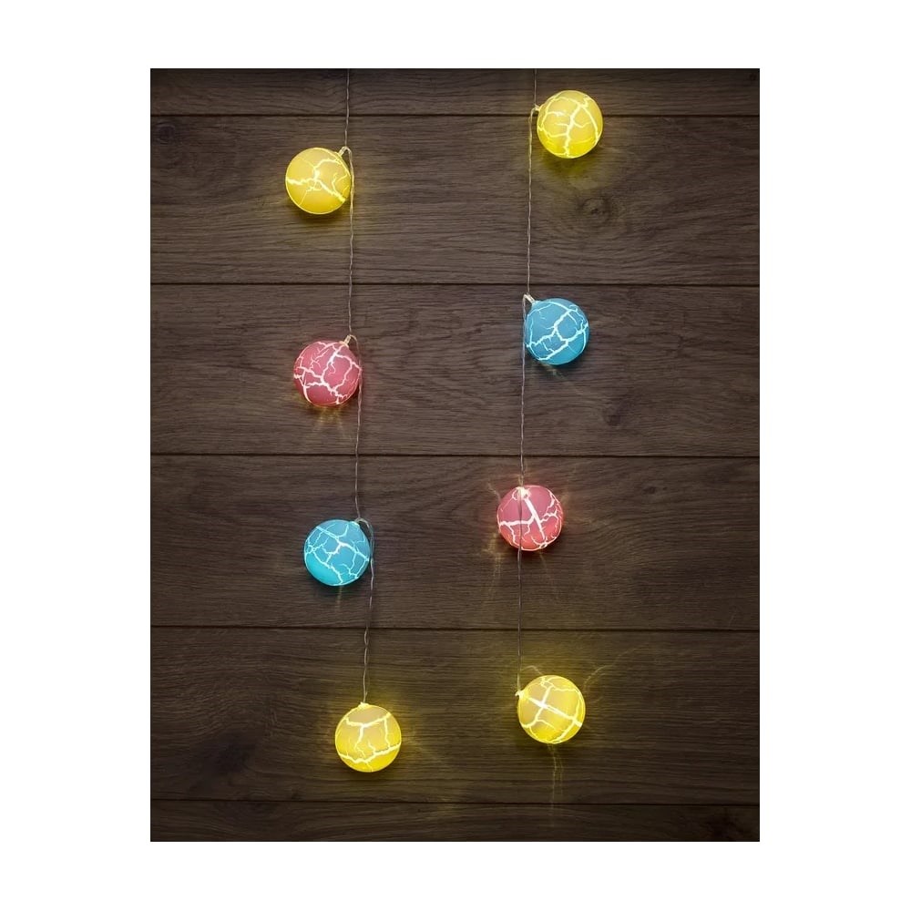 Светодиодная гирлянда NEON-NIGHT Карамельки 1.5м 10 LED, прозрачный провод, тёплый-белый 303-082 состоит из электрического шнура из прозрачного ПВХ, батарейного блока и 10 пластиковых разноцветных шариков, мягко подсвечиваемых 10 диодами. Поверхность фигурок с фактурой «кралекюр» пропускает яркие лучи, создавая магический эффект объемного свечения. Гирлянда не нуждается в прямом подключении к электросети и питается от двух батареек типа АА, что гарантирует абсолютную безопасность в использовании. Украшение прекрасно подходит для оформления гостиной, спальни, детской комнаты. Гирлянда работает в режиме постоянного свечения.