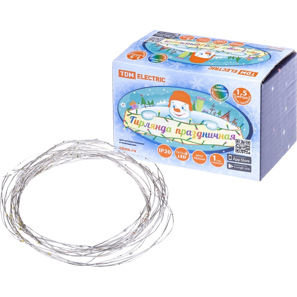 Светодиодная гирлянда TDM ELECTRIC Роса 105, конский хвост, 7x15LED, 1,5 м, многоцветная, 250В SQ0361-0061