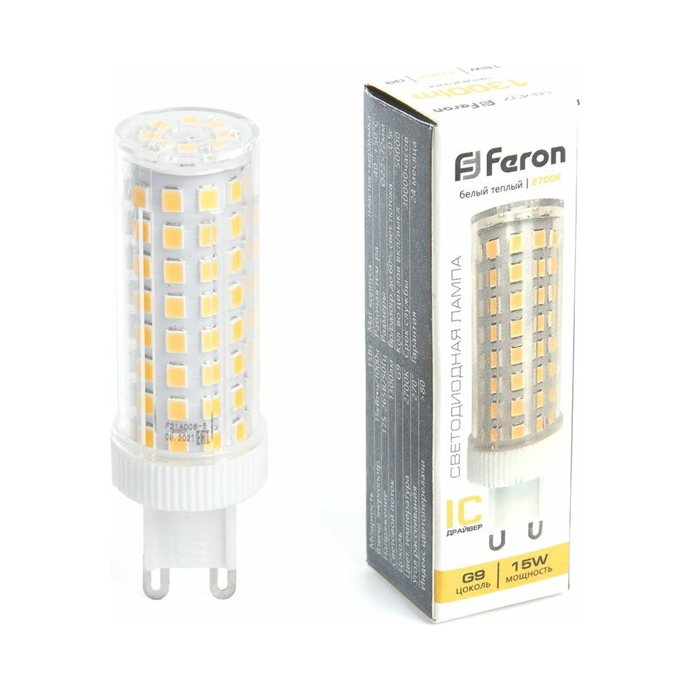 Светодиодная лампа FERON LB-437 G9 15W 2700K 38212 является заменой галогенных капсульных ламп и подойдет для люстр и встраиваемых светильников. Может использоваться как для основного освещения жилых, так и для точечной и акцентной подсветки. Лампа выполнена в аккуратном пластиковом корпусе с применением супер-ярких светодиодов. Низкое энергопотребление и длительный срок службы делают лампы выгодными для применения.
