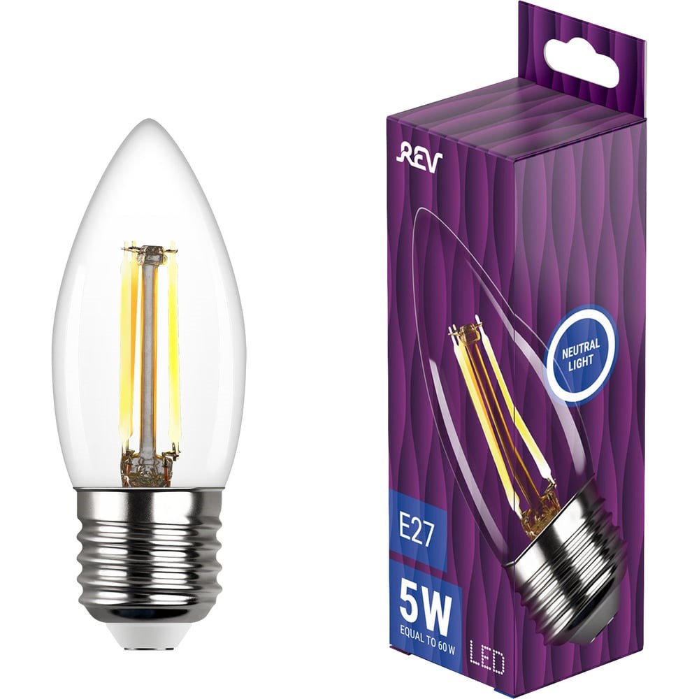 Филаментные светодиодные лампы сочетают в себе привычный внешний вид ламп накаливания и преимущества энергосберегающих светодиодных вариантов, обеспечивают значительную экономию электроэнергии и имеют более высокий КПД. Специальная стеклянная колба позволяет использовать их в открытых светильниках, хрустальных люстрах, торшерах и бра. Идеально подходят для различных стилей: лофт, авангард, ретро и др. Филаментные лампы REV выпускаются в различных формах: изящные свечи (витые, гладкие, изогнутые), шары Ø от 45 до 125 мм, груши, колбы Эдисона, с RGB нитью, а также лампы специальной декоративной серии в виде кристаллов и бриллиантов - на любой вкус и для самых оригинальных дизайнерских решений. В линейке представлены лампы мощностью от 2 до 13W в трех вариантах: теплого в 2700К или 2200К и нейтрального белого свечения в 4000К. Такие LED лампы обладают высокой стабильностью светового потока, отсутствие пульсации создает мягкое, комфортное и безопасное для глаз свечение, особая конструкция обеспечивает широкий угол рассеивания света до 360°.