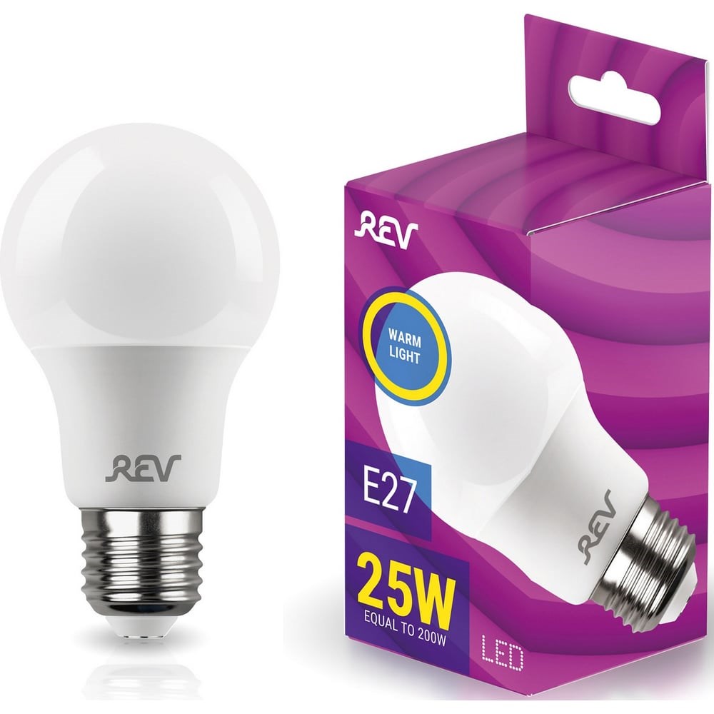 Светодиодная лампа LED A60 Е27 25W, 2700K, теплый свет 32532 1 является надежным, долговечным и экономичным осветительным элементом, который имеет стандартный цоколь и матовую поверхность колбы. Станет идеальным вариантом для эксплуатации совместно с настольными или настенными светильниками.Светодиодные лампочки — современный источник света, идеально подходящий для освещения витрин, интерьеров, декоративной подсветки. Они характеризуются низкой температурой нагрева, что позволяет использовать их в декоративных светильниках. Срок службы светодиодной лампочки до 30 раз дольше срока службы лампы накаливания. Уровень энергопотребления в 10 раз ниже по сравнению с аналогичными по световой отдаче лампами накаливания. В набор входит 1 светодиодная лампочка REV.