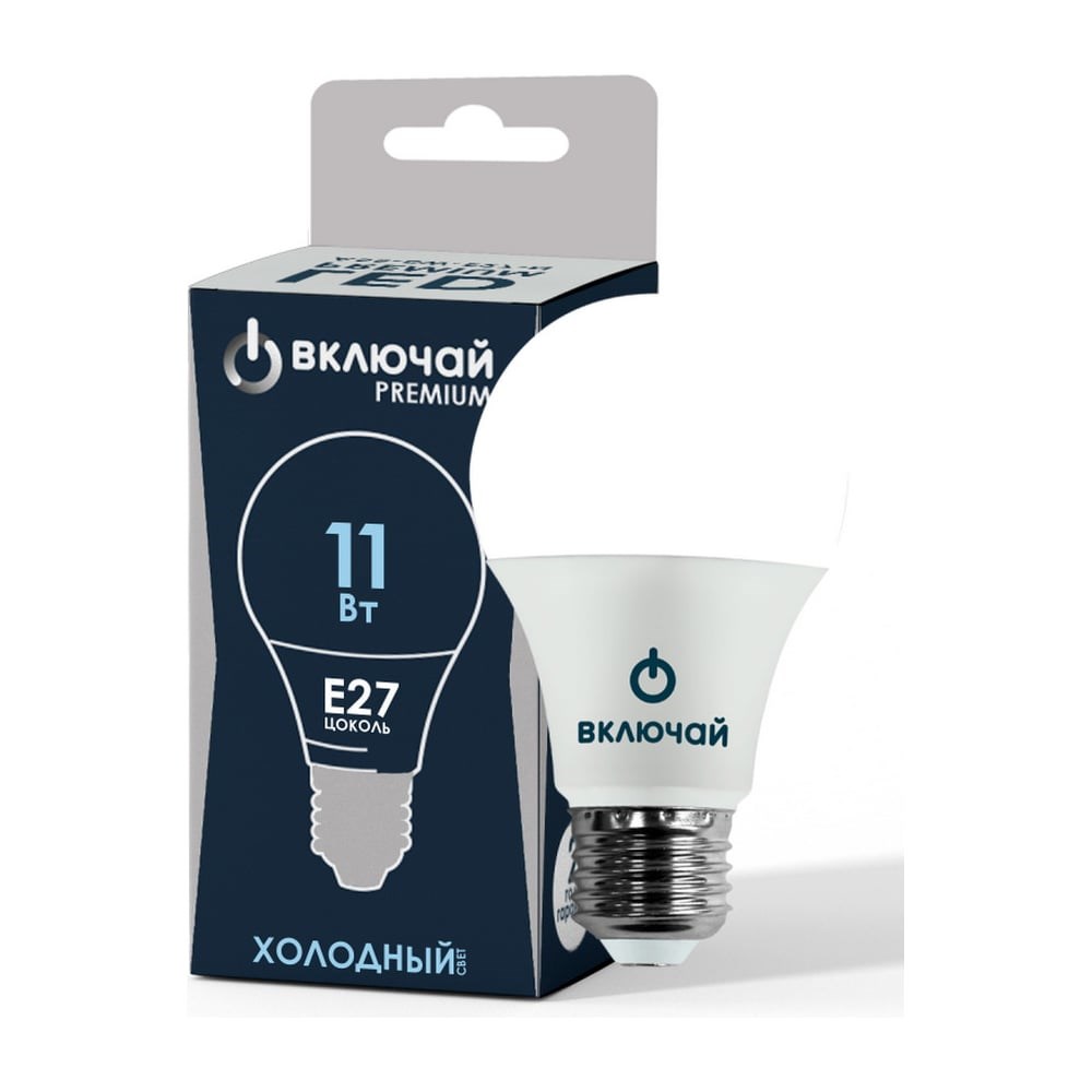 Светодиодная лампа Включай 11W E27 А60 6500K 220V пластик LED PREMIUM А60-11W-E27-WW ЛОН 1007804