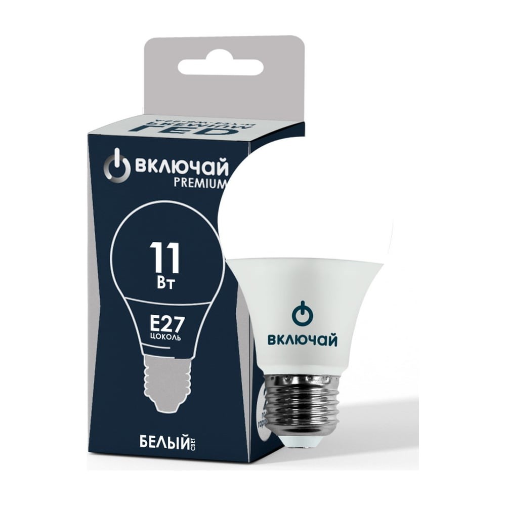 Светодиодная лампа Включай 11W E27 A60 4000K 220V пластик LED PREMIUM А60-11W-E27-W ЛОН 1007803
