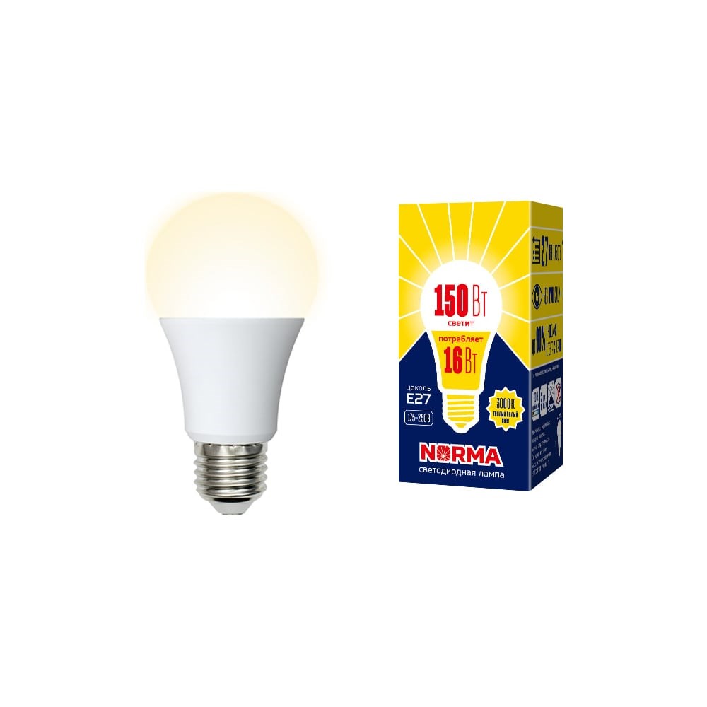 Светодиодная лампа Volpe. Форма A, матовая. Серия Norma LED-A60-16W/WW/E27/FR/NR UL-00004027