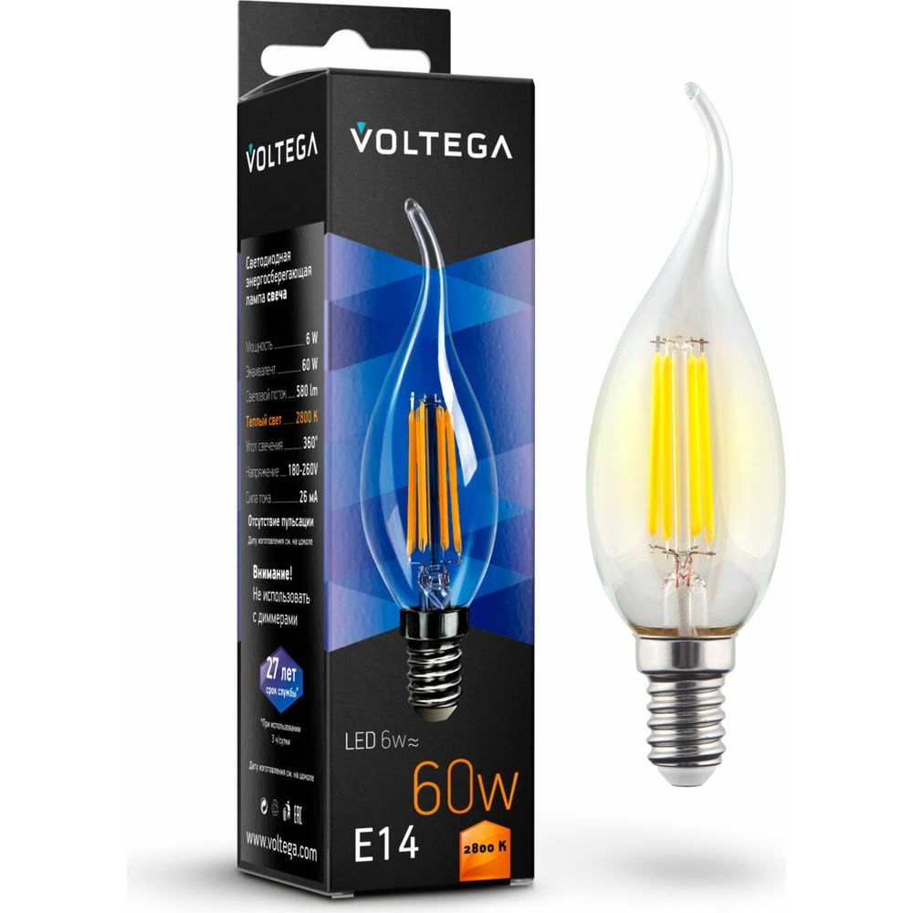 Светодиодная лампа VOLTEGA Свеча на ветру Е14 2800К 6W 7017