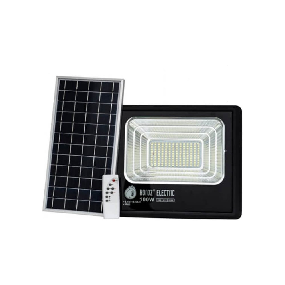 Светодиодный прожектор с модулем солнечной батареи HOROZ ELECTRIC 068-012-0100 100W черный 6400К 3.2V TIGER-100 HRZ33002949