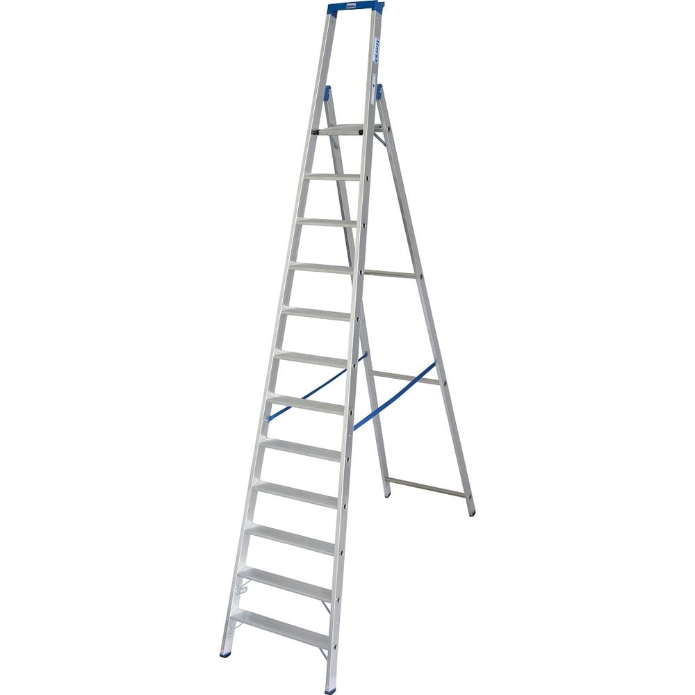 Свободностоящая стремянка 12 ступенек Krause STABILO 124579 - отличное решение для выполнения различных работ на высоте до 4.8 метра: внешняя отделка домов, установка и обслуживание телевизионных антенн, окон, витражей и вывесок. Такая стремянка характеризуется высокой прочностью и устойчивостью к атмосферным факторам. Специальные наконечники на опорных ножках исключают возможность скольжения лестницы во время работы. Высокая дуга безопасности с полкой на резьбовых соединениях и крюком для ведра. Прочный высокотехнологический металлический шарнир с обхватом боковины. Вмонтированная защита от защемления шарниром. Прочная рифленая алюминиевая площадка с двухсторонним рычагом. Ремни вшиты в металлические петли, которые прикручены к боковинам (от 6 ступеней). Высокопрочное развальцованное соединение ступеней с боковинами стремянки. Двухкомпонентные заглушки (SafetyCap) обеспечивают безопасное использование. Дополнительные угловые распорки под нижней ступенью для большей стабильности. Продукт сертифицирован в строгом соответствии с ГОСТ Р 58752-2019 и DIN EN-131