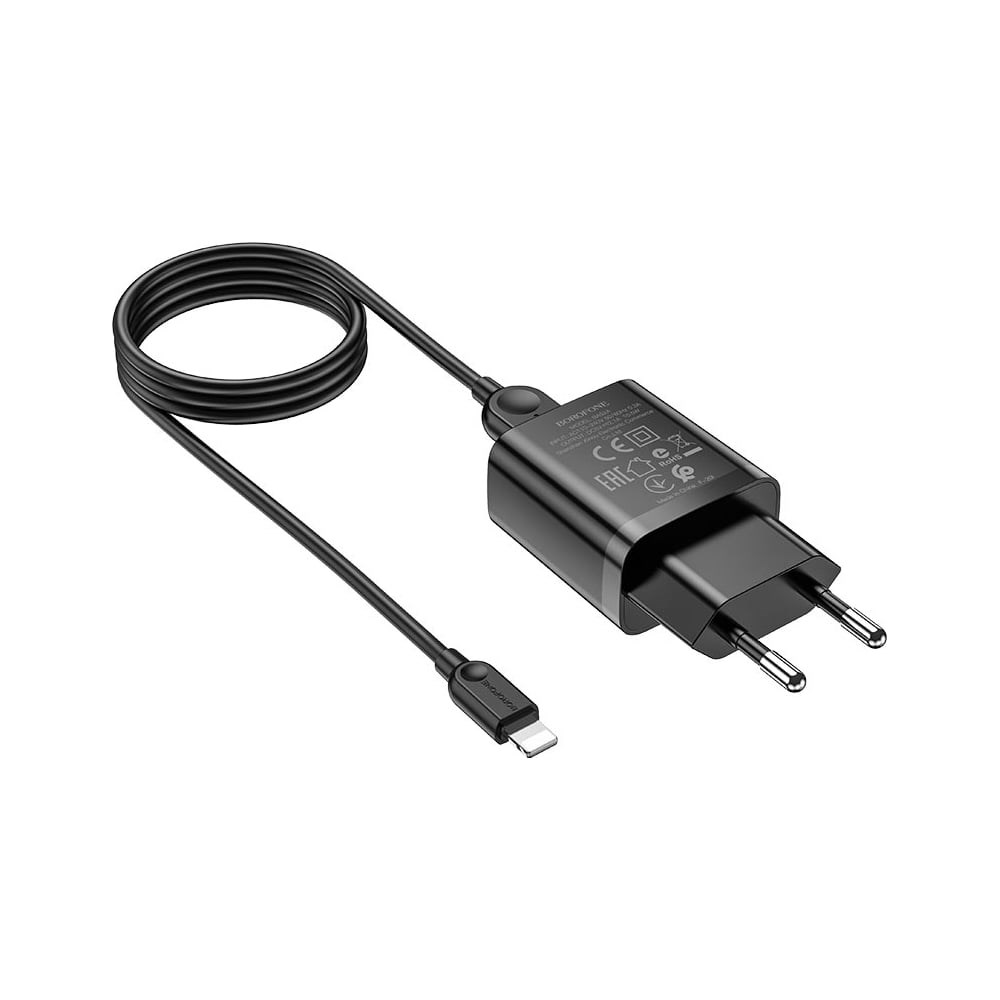 СЗУ Borofone ba52a gamble 1xusb, 2.1а + кабель lightning 8-pin, 1м (черный) 0L-00050008