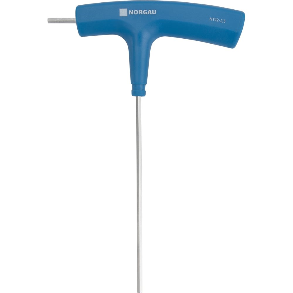Шестигранный ключ NORGAU Т-образный. 2,5 мм, 061009025 имеет оптимальную форму для работы с крепежом. Есть два плеча разной длины для заглубленного крепежа. Инструмент оснащен прочной пластиковой рукояткой для надежного хвата. Это помогает работать в любых условиях. Качественное хромирование ключа обеспечивают надежную защиту от коррозии. Изготовлен из высококачественной закаленной и хромированной стали SNCMV.
