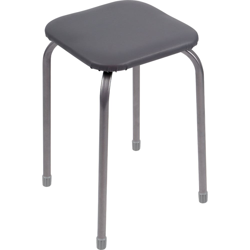 Табурет на четырех опорах с мягким сиденьем из винилискожи. Материал сиденья устойчивый к истиранию и лёгкий в чистке. Пластиковые колпачки на ножках защищают поверхность пола от царапин. Конструкция стула позволяет легко штабелировать несколько изделий.