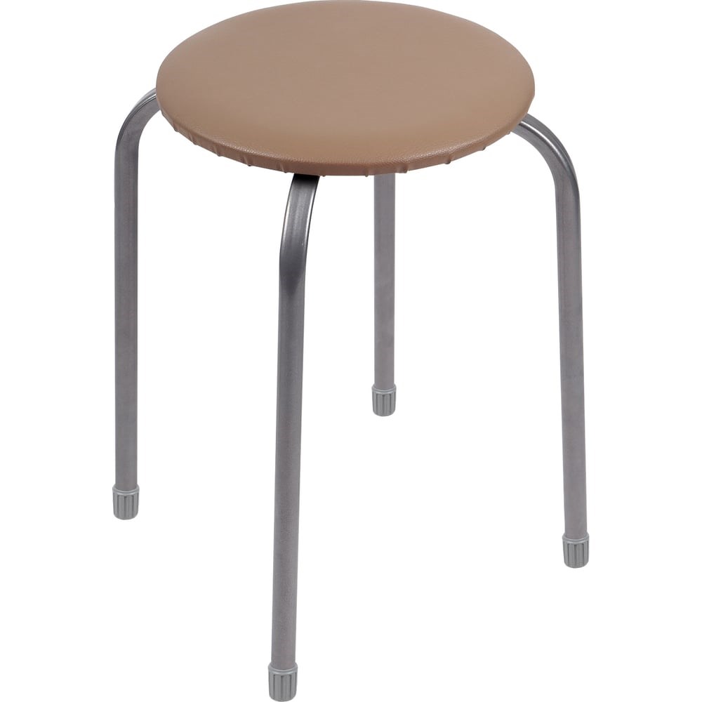 Табурет на четырех опорах с мягким сиденьем из винилискожи. Материал сиденья устойчивый к истиранию и лёгкий в чистке. Пластиковые колпачки на ножках защищают поверхность пола от царапин. Конструкция стула позволяет легко штабелировать несколько изделий.