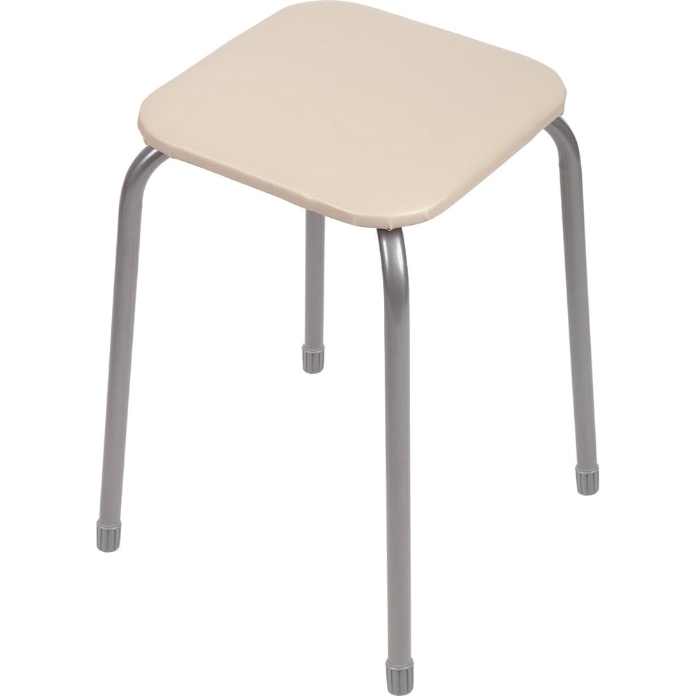 Табурет на четырех опорах с мягким сиденьем из винилискожи. Материал сиденья устойчивый к истиранию и лёгкий в чистке. Пластиковые колпачки на ножках защищают поверхность пола от царапин. Конструкция стула позволяет легко штабелировать несколько изделий.