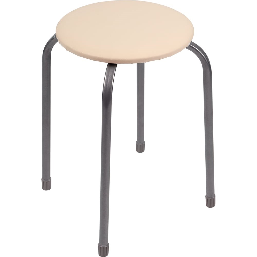 Табурет на четырех опорах с мягким сиденьем из винилискожи. Материал сиденья устойчивый к истиранию и лёгкий в чистке. Пластиковые колпачки на ножках защищают поверхность пола от царапин. Конструкция стула позволяет легко штабелировать несколько изделий.