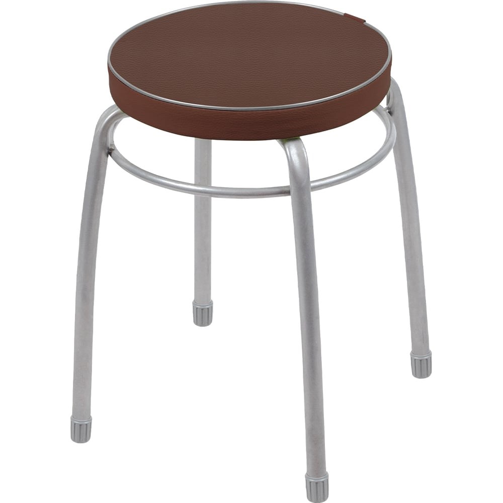 Табурет на четырех опорах с мягким сиденьем из винилискожи. Материал сиденья устойчивый к истиранию и лёгкий в чистке. Пластиковые колпачки на ножках защищают поверхность пола от царапин. Конструкция стула позволяет легко штабелировать несколько изделий.