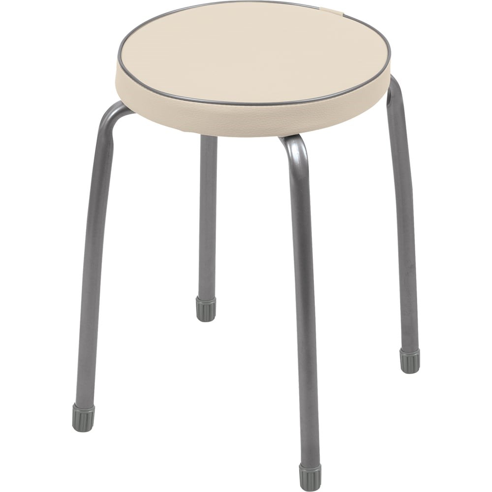 Табурет на четырех опорах с мягким сиденьем из винилискожи. Материал сиденья устойчивый к истиранию и лёгкий в чистке. Пластиковые колпачки на ножках защищают поверхность пола от царапин. Конструкция стула позволяет легко штабелировать несколько изделий.