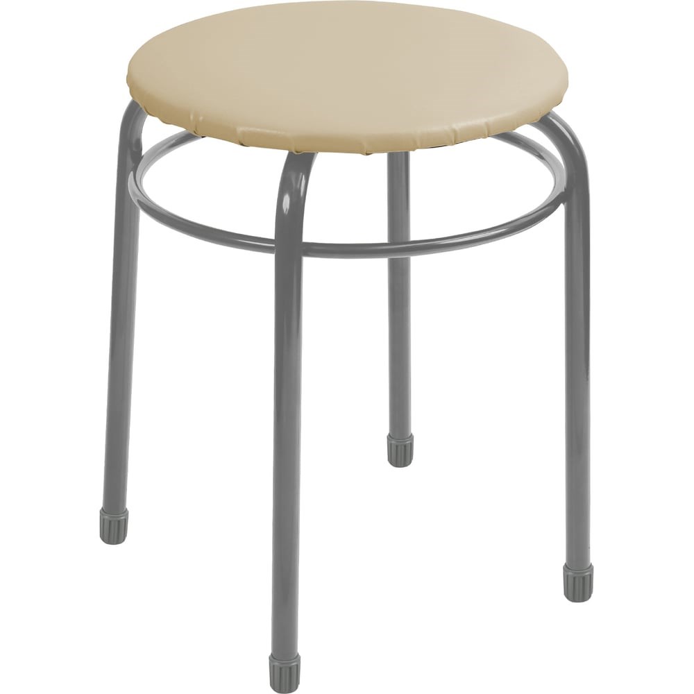 Табурет на четырех опорах с мягким сиденьем из винилискожи. Материал сиденья устойчивый к истиранию и лёгкий в чистке. Пластиковые колпачки на ножках защищают поверхность пола от царапин. Конструкция стула позволяет легко штабелировать несколько изделий.