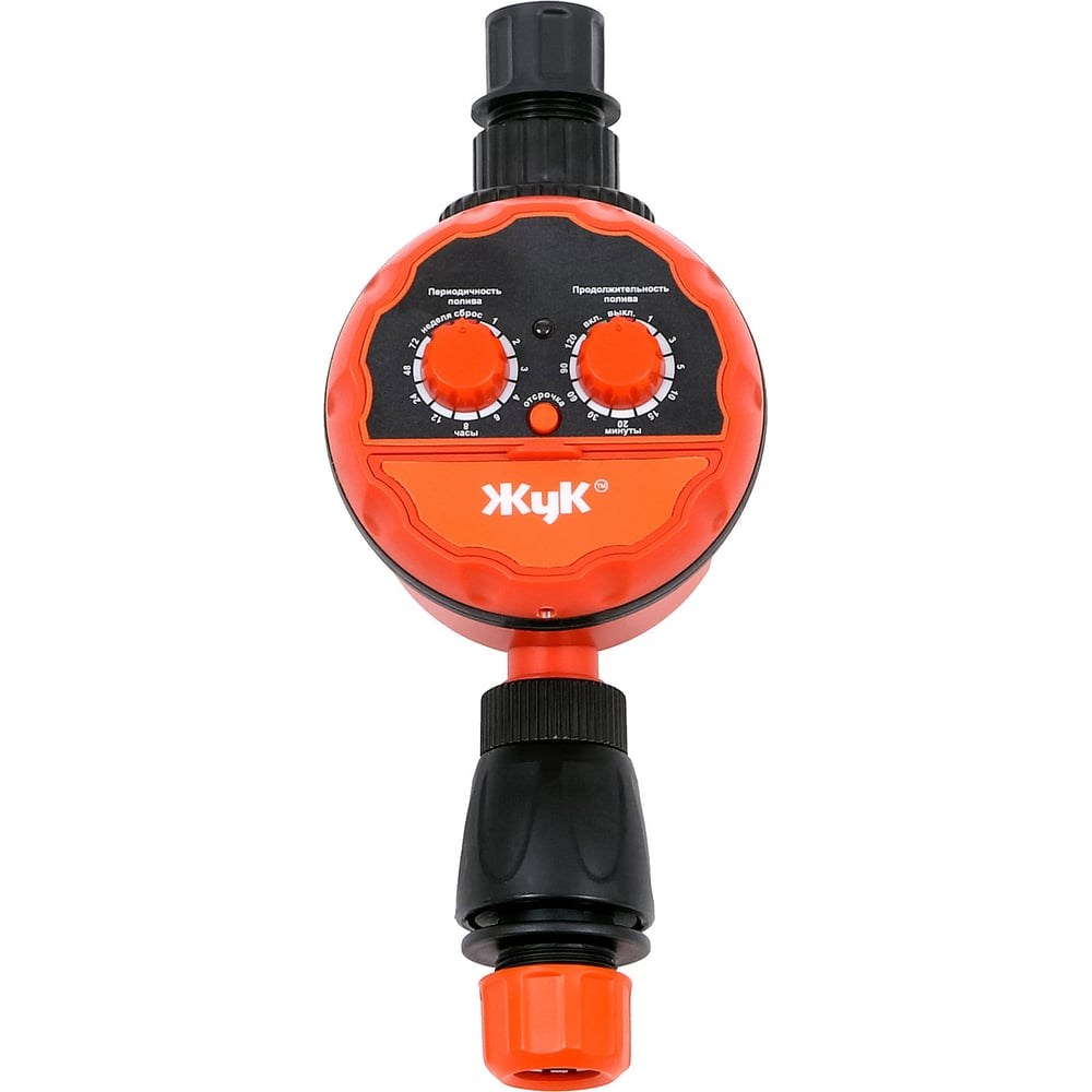 Таймер для капельного полива Cicle Жук 4630035335721 служит для автоматического управления подачей воды. Позволяет регулировать время полива от 1 до 120 минут, частоту полива от 1 часа до 7 суток. Работает от двух батареек типа ААА. Имеет адаптер под коннектор для быстросъёмного подключения шланга. Вес таймера: 300 грамм. Внимание! После первой настройки таймер откроется на полив через заданное время. Например, если выставлен период полива 1 час, то таймер включится через 1 час.