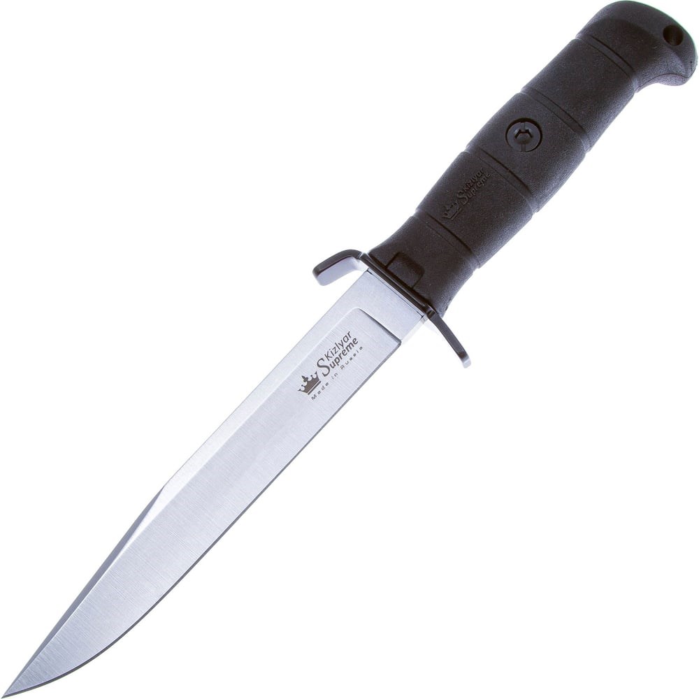 Рукоять выполнена из цепкого кратона. Это особый вид резино-пластика, устойчивый к истиранию, воздействию температуры и влаги. Рукоять ничего не впитывает, остается цепкой даже когда влажная, легко моется и не дубеет от мороза. Клинок выполнен из отличной японской коррозионностойкой стали AUS-8, закаленной на твердость 58-59 HRС. Она весьма прочна на излом, проста в заточке и требует минимум ухода. Для компенсации толстого обуха нож оснащен очень широкими спусками, они дают отличный контролируемый рез без всяких компромиссов. Нож оснащен отверстием для темляка.