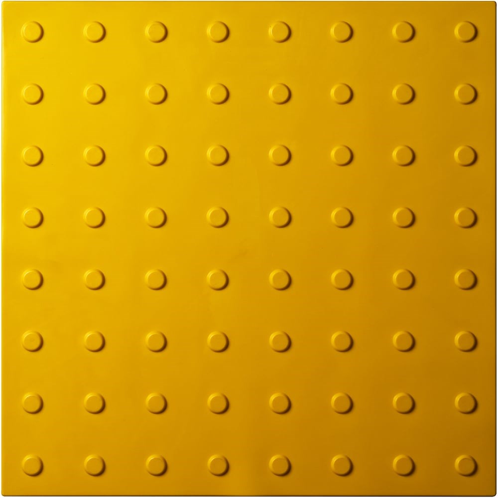 Тактильная плитка преодолимое препятствие PALITRA TECHNOLOGY (поле внимания, конусы линейные, 10шт) выполненные в виде усечённых конусов, расположенных в линейном порядке, информируют человека с нарушениями зрения о преодолимом препятствии на пути следования (дверной проём, лестница). Толщина основания плитки 1 мм, т.е. высота вместе с тактильными рифами не более 5 мм, что позволяет беспрепятственно передвигаться по тактильной дорожке человеку в кресле-коляске. Для обеспечения контраста с подстилающей поверхностью, а также для обеспечения оптимальных условий восприятия цвета слабовидящим человеком, тактильная плитка имеет желтый цвет поверхности. Тактильная плитка изготовлена из высококачественного литого ПВХ пластика. Твёрдость плитки не превышает 98 ед по Шору, по таблице А, что обеспечивает достаточно высокие эксплуатационные характеристики и предотвращает образование заломов на плитке в процессе укладки. Внутренняя поверхность конусов усилена цельнолитыми рёбрами жёсткости, которые имеют цельнолитую структуру и не имеют видимых швов и соединений с поверхностью плитки, что значительно увеличивает прочностные свойства изделия.