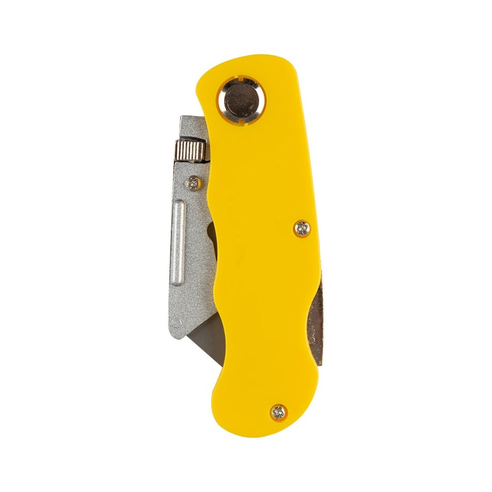 Складной строительный нож с трапециевидным лезвием - универсальный инструмент, применяющийся в отделочных работах. Используется для резки гипсокартона, кровельных материалов, пластика, резины, дерева, кожи, картона, бумаги, обоев, линолеума, ковровых покрытий, пленок и другого.