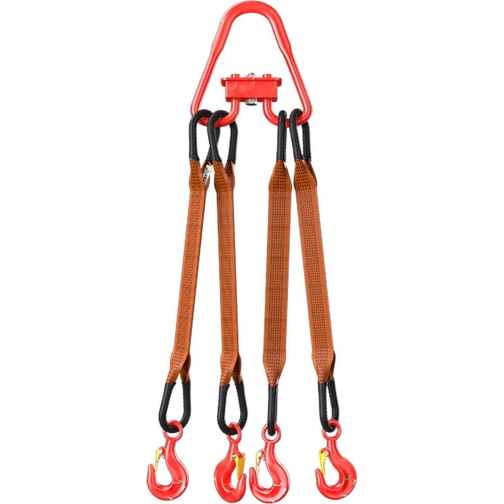 Строп текстильный четырехветвевой 4СТ изготавливается из плоской полиэстеровой ленты с использованием овального звена типа Ов (по умолчанию). Имеются руководящие документы РД 10-33-93 (с изменениями в РД 10-231-98), РД 24-СЗК-01-01, а также целый ряд других, включая международные. Текстильные одноветвевые стропы 1СТ, из которых состоит строп 4СТ, ряд производителей, в том числе и зарубежных, маркируют различным цветом в полной зависимости от ширины и грузоподъемности изделий. Стропы 4СТ это по сути четыре стропа 1СТ. Они производятся из полиэстеровой плоской ленты с петлевыми окончаниями (огонами), которые формируются путем сшивки нитей с использованием прямых швов (в некоторых случаях волнообразных и зигзагообразных). Предлагаемые стропы 4СТ имеют маркировочную бирку с обозначением информации, которая должна быть указана в соответствии с РД 24-СЗК-01-01. Основное назначение строп 4СТ – осуществление широкого спектра такелажных работ на объектах различного функционального предназначения при температуре рабочей среды в диапазоне от – 60 °С до + 100 °С. Преимущества Основные достоинства четырехветвевых текстильных строп 4СТ: • универсальность из-за широкой вариативности используемых решений; • небольшая масса по сравнению со стальными аналогами; • высокая степень устойчивости к широкому спектру агрессивных факторов окружающей среды. Внимание, изображение товара может отличаться от реального! Верные параметры указаны в технических характеристиках товара.