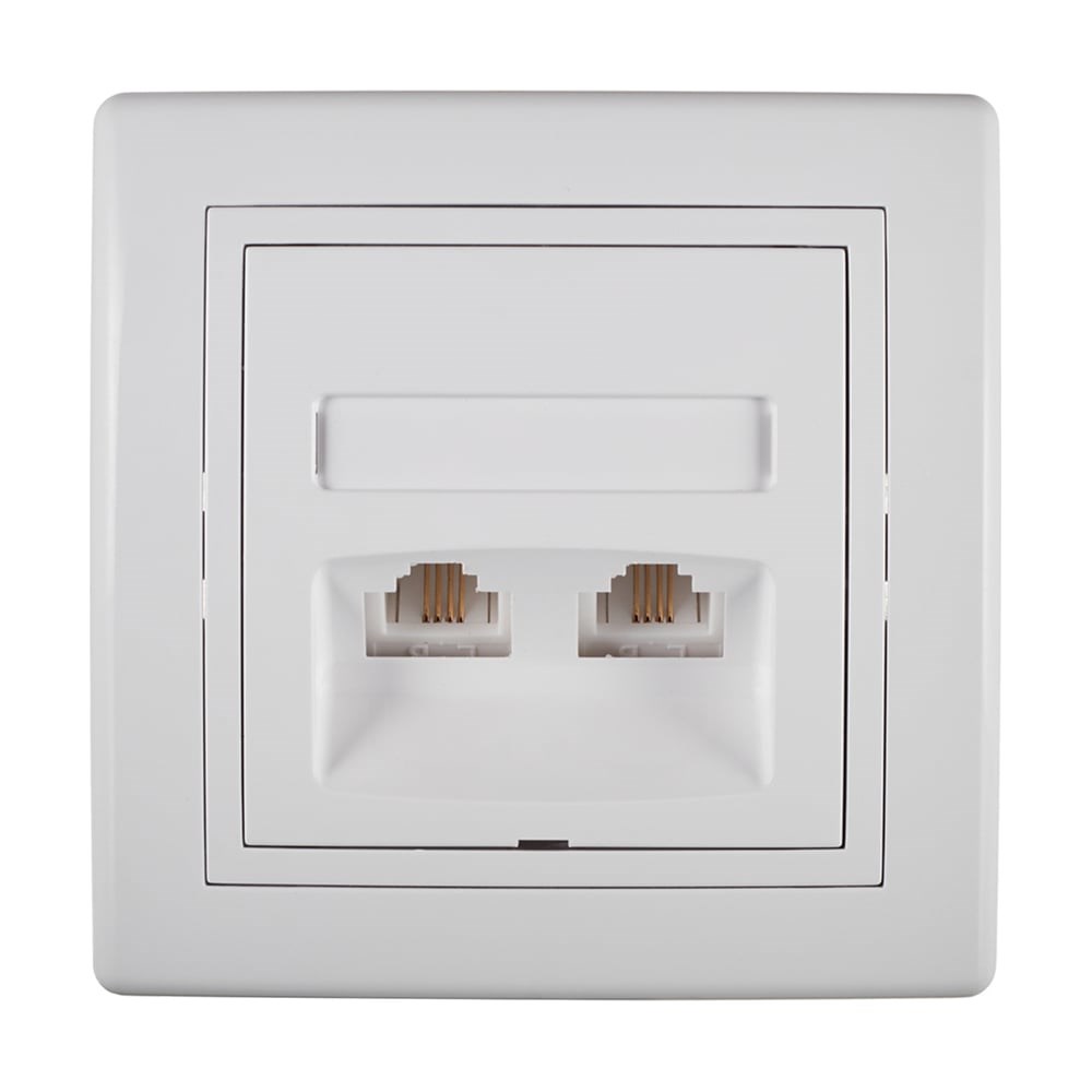 Телефонная розетка Aling-conel PRESTIGE 2xRJ12 6/4 Cat3, белая 613.00 113060 с двумя отдельными линиями. Настенный монтаж в монтажной коробке R70 с помощью зажимов или винтов. Стандарт: IEC 60603-7.
