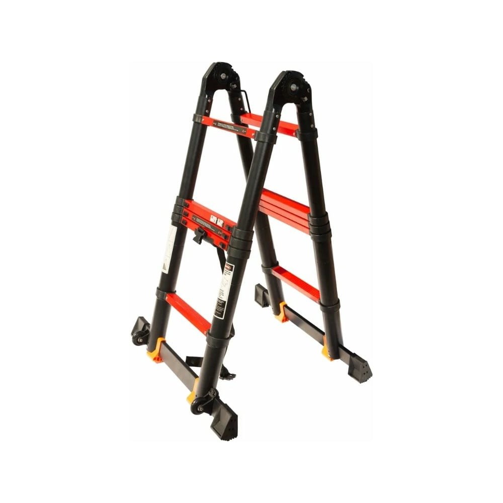 Телескопическая лестница-стремянка WORKY BLACK 2.5м/5м, 8 ступеней ARD151380 изготовлена по современным технологиям из качественного алюминия и снабжена высокопрочными шарнирами (замками) из стали. Замок шарнир надёжно впрессован в направляющий профиль и расклёпан цельнометаллическим заклёпками. Лестницы серия black входят в премиум сегмент лестниц благодаря повышенной надёжности и качественному крашенному покрытию, которое бережёт лестницу от износа, не оставляет алюминиевого следа на руках и придаёт современный стильный вид вашей лестнице. Противоскользящие опорные башмаки из резинопластика, которые защищают напольные покрытия и обеспечивают крепкое сцепление с любой поверхностью. Она легко транспортируется, так как оснащена удобными транспортировочными колёсами, без проблем помещается даже в небольшой автомобиль, так как имеет габариты в сложенном виде 90х48х19 см. Лестница без усилий раскладывается и мало весит — всего 16.9 кг. Высота в положении лестницы - 5 м. Высота в положении стремянки - 2.45 м. Высота в сложенном виде: 94 см. Имеет 16 рифленых ступеней, которые гарантируют надёжное сцепление стопы с поверхностью. Ступеньки в рабочем положении фиксируются автоматически. Система блокировки предохраняет от непроизвольного складывания лестницы, разблокировка осуществляется нажатием кнопок на ступенях. Максимальная нагрузка на все профессиональные лестницы WORKY - 150 кг! Внимание! Количество ступеней отличается от представленного на фото.